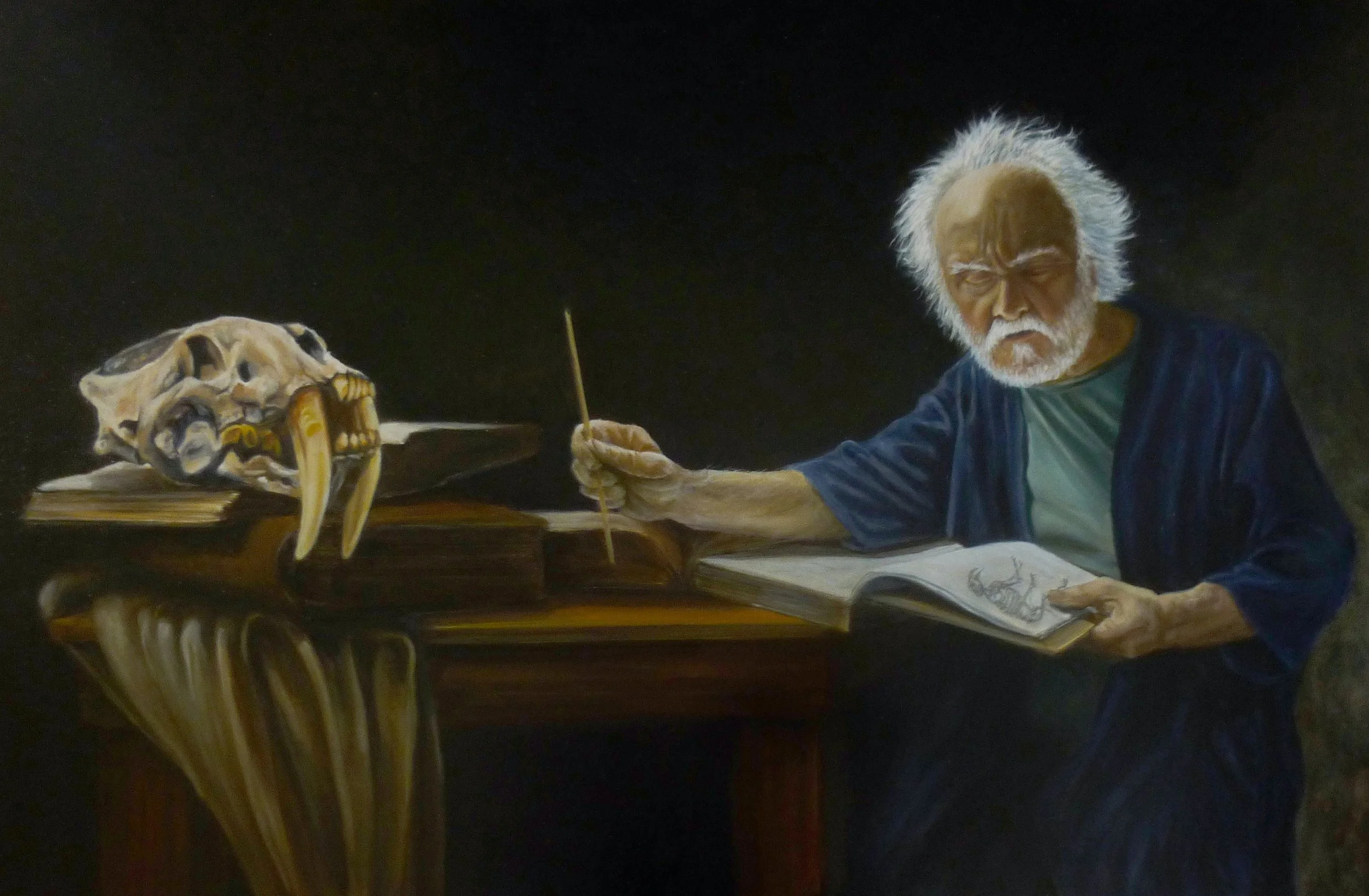 The first series entitled March to Extinction intends to reflect on the sustainability of our materialistic way of life. The images are from photos I’ve taken at Rodeo Drive in Beverly Hills, Ca. which represents the epitome of our materialistic ‘lifestyle’. Incorporated into the paintings are images of the Mega fauna from the Pleistocene era that once roamed the Rodeo Drive turf and are in evidence right next door at the La Brea tar pits. Now extinct through no fault of their own, these marvelous creatures are surreally juxtaposed in window reflections and dark alleys along Rodeo Drive to remind us of our own vulnerability. We may very well join the Pleistocene Mega fauna in extinction if we do not reflect and act on the un-sustainability of our conspicuous consumption.